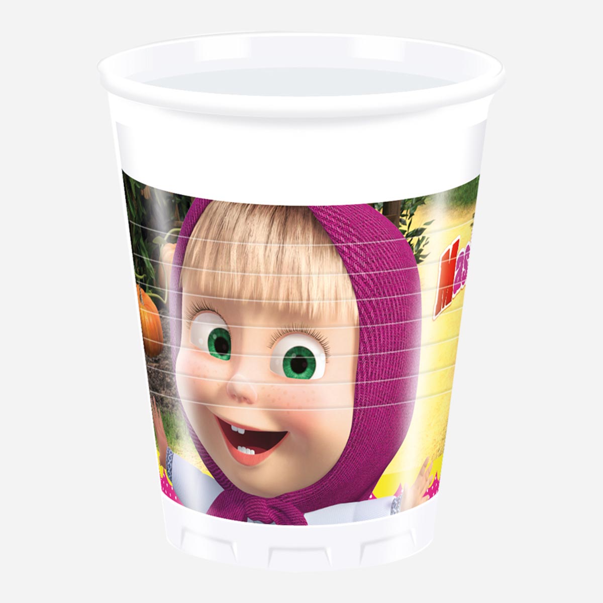 Bicchieri con grafica Masha e Orso. Bicchieri per feste di compleanno e ricorrenze speciali. Ideale per feste a tema personaggi della tv per bambini e ragazzi.