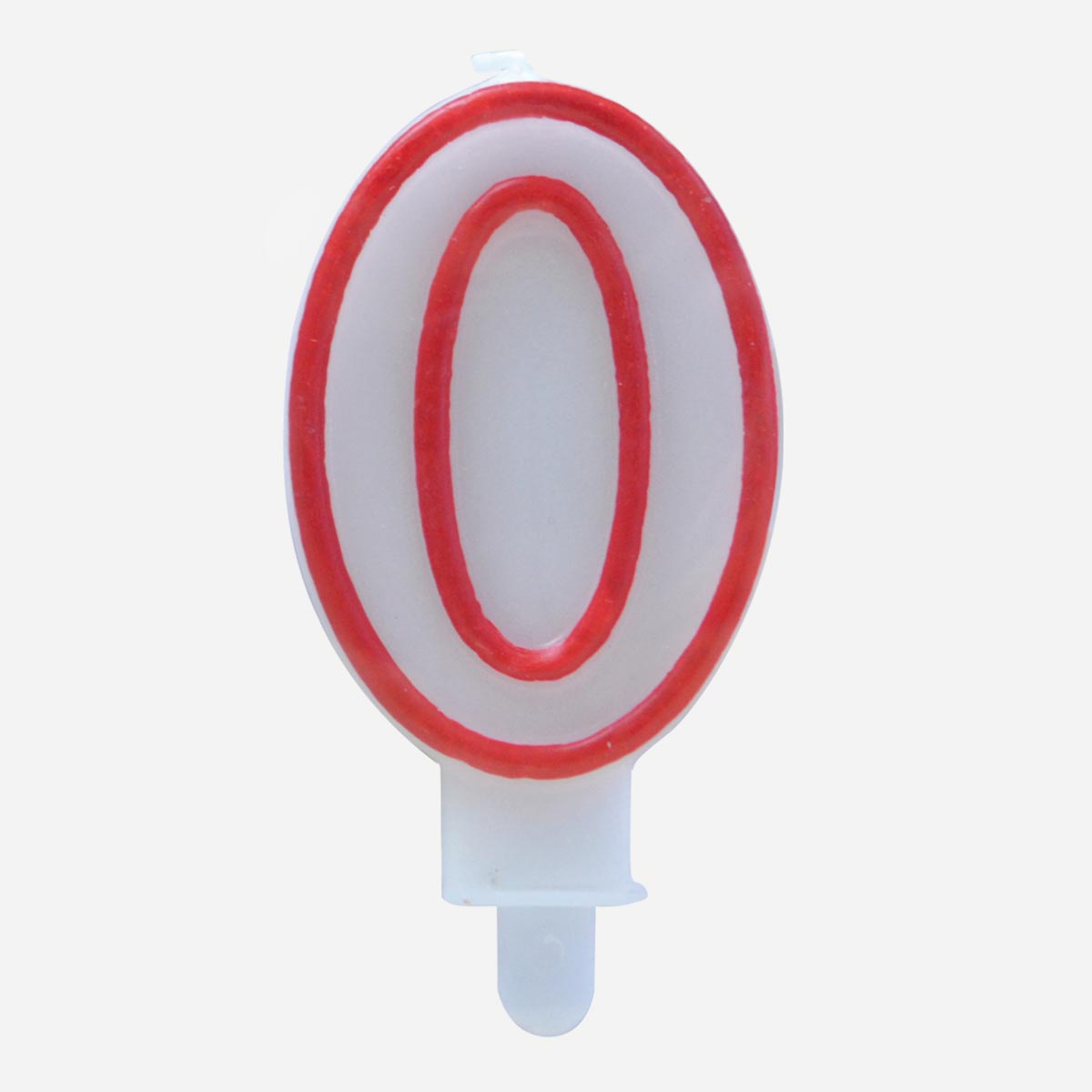 Candela numerale con bordo rosso. Candeline numero per torte e dolci di compleanno o ricorrenze speciali. Candele personalizzate, di diverse forme e colori.