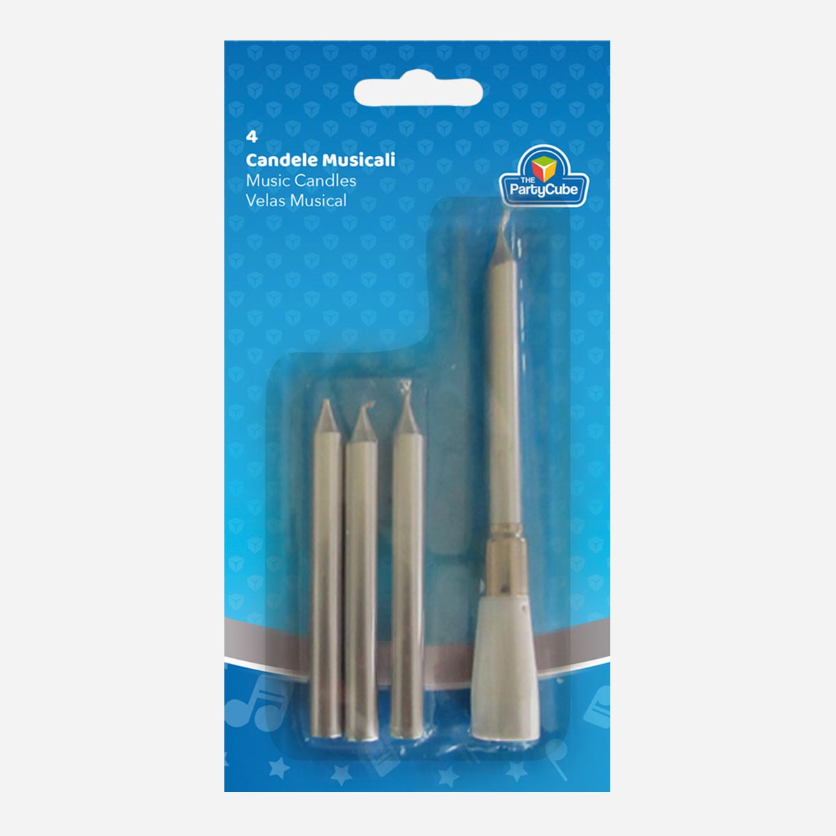 Candela musicale argento. Candeline con musica per torte e dolci di compleanno o ricorrenze speciali. Candele personalizzate, di diverse forme e colori.