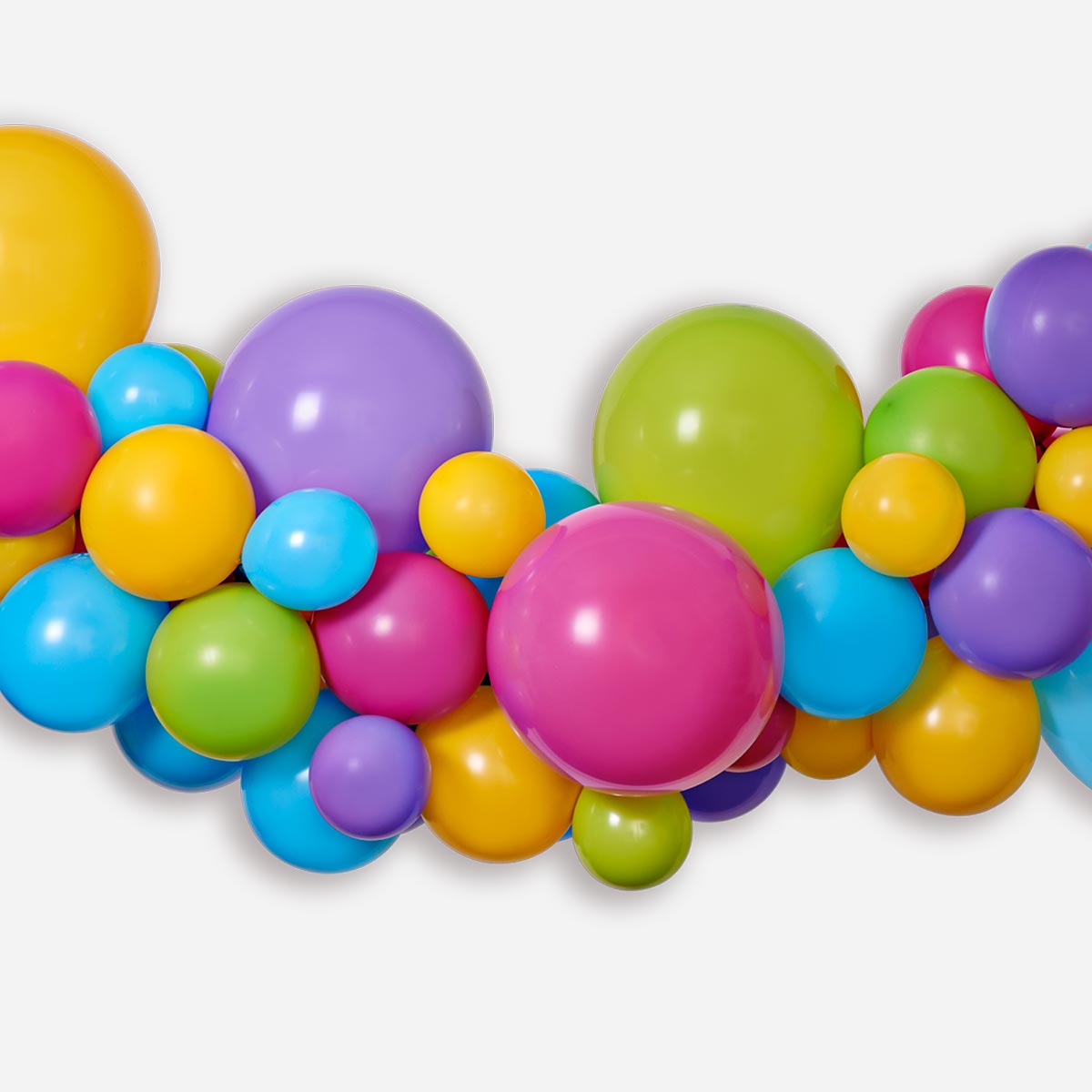 Kit ghirlanda multicolour perlata. Composizione di palloncini in lattice assortiti che compongono una ghirlanda. Palloncini made in Italy, alta qualità e lunga durata. Prodotto certificato e fabbricato in Italia. Palloncini per feste di compleanno e ricorrenze speciali.
