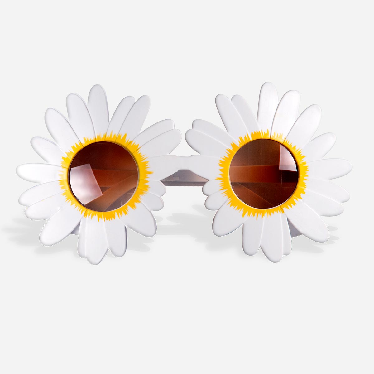 Occhiali party fiore. Occhiali divertenti sagomati a forma di margherita per feste di compleanno e ricorrenze speciali.