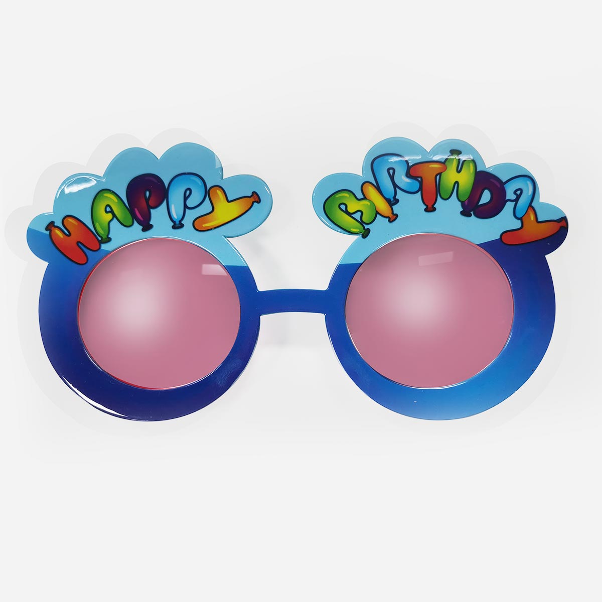 Occhiali party colorati con scritta Happy Birthday. Occhiali divertenti sagomati multicolore per feste di compleanno e ricorrenze speciali.