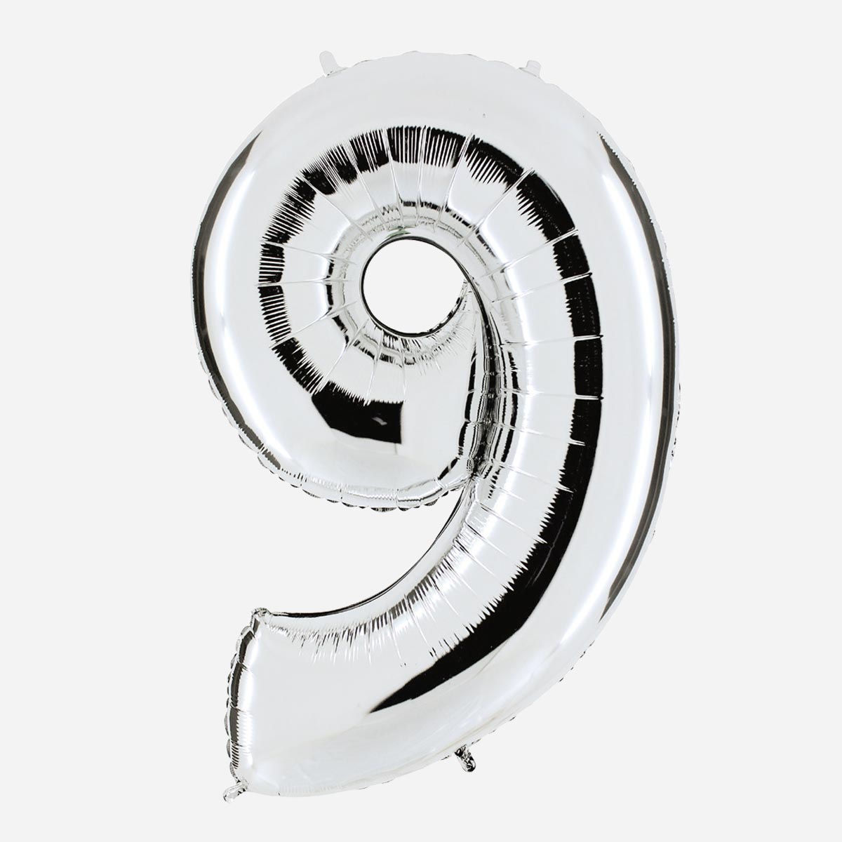 Numero: 9Colore: argentoComposizione: mylarDimensione: 100 cmConfezione: 1 pezzo