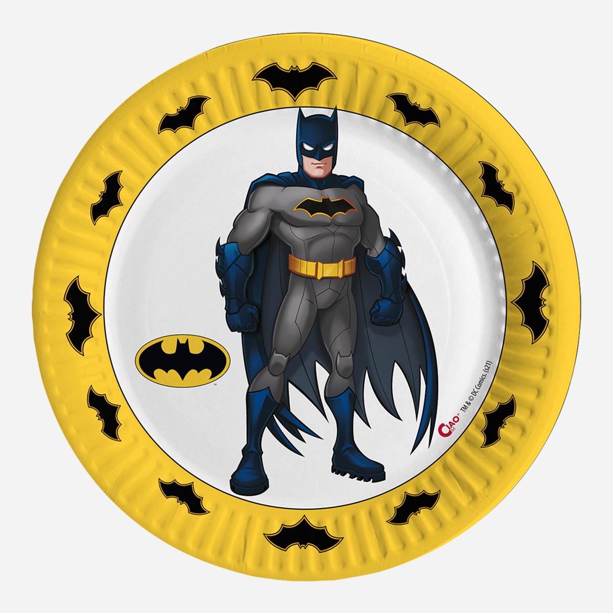 Piatti in carta bio con grafica Batman. Piatti per feste di compleanno e ricorrenze speciali. Ideale per feste a tema personaggi della tv per bambini e ragazzi.