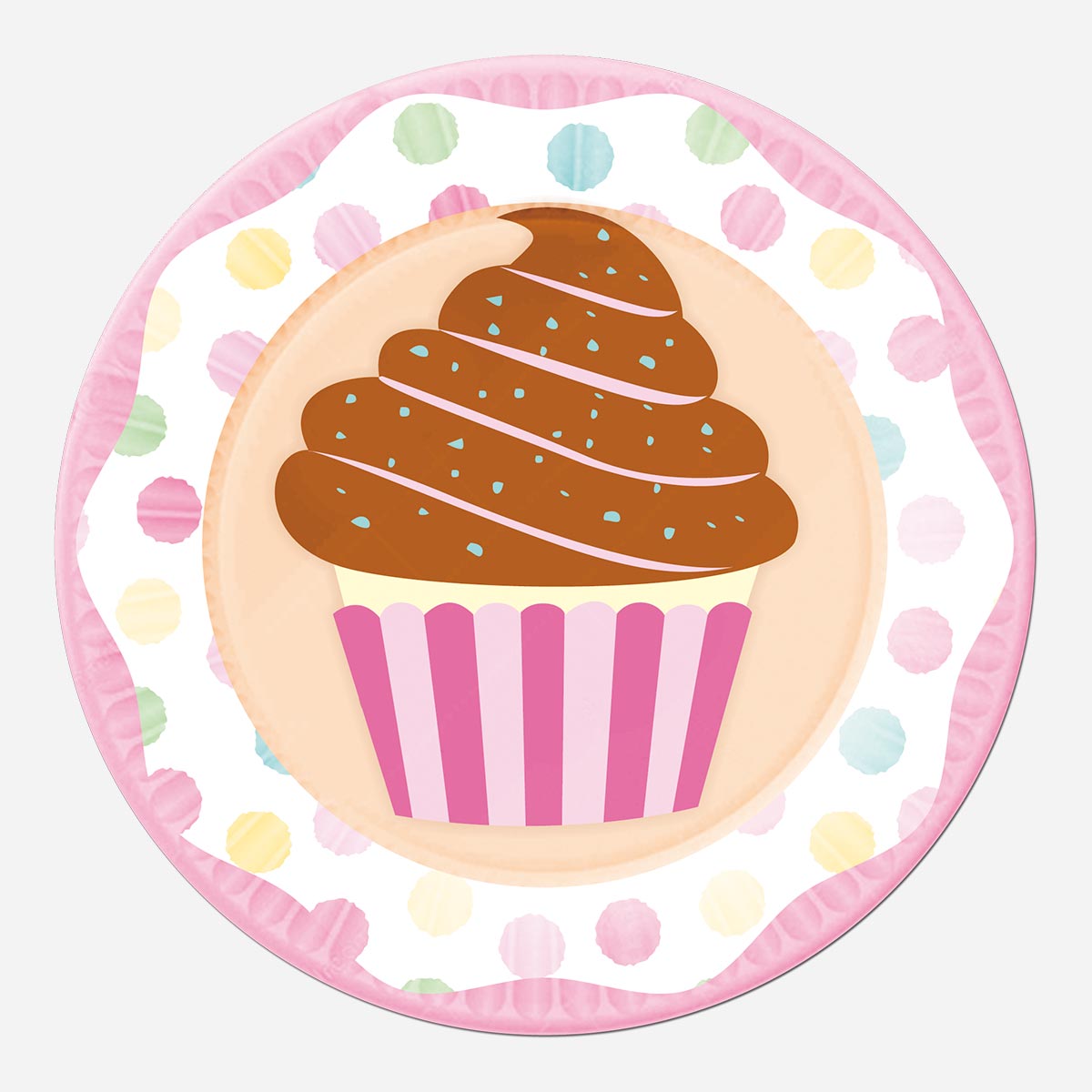 Piatti in carta con grafica cup cake. Piatti per feste di compleanno e ricorrenze speciali. Ideale per feste a tema.