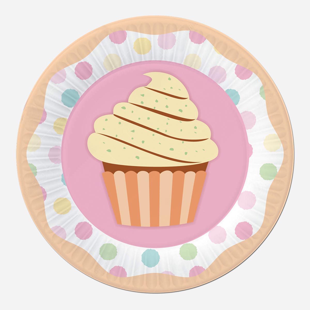 Piatti in carta con grafica cup cake. Piatti per feste di compleanno e ricorrenze speciali. Ideale per feste a tema.