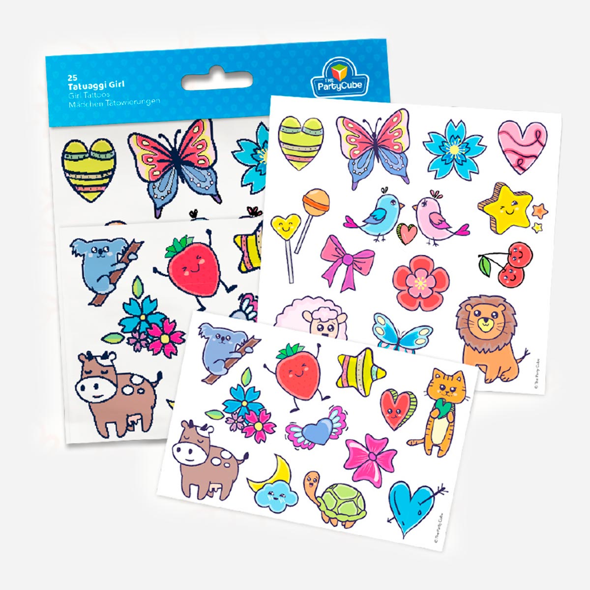 Tatuaggi temporanei ad acqua a tema girl. Tatuaggi rimovibili, colorati e sicuri sulla pelle. Tatuaggi per bambini, da utilizzare per feste compleanno e altre ricorrenze speciali. Ideale per feste a tema per bambini e ragazzi.