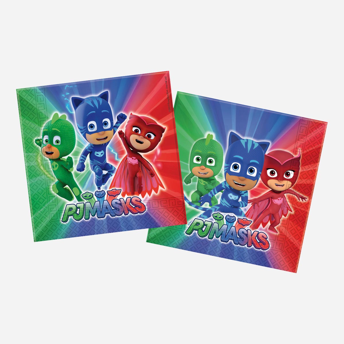 Tovaglioli in carta con grafica Pj Masks. Tovaglioli per feste di compleanno e ricorrenze speciali. Ideale per feste a tema personaggi della tv per bambini e ragazzi.